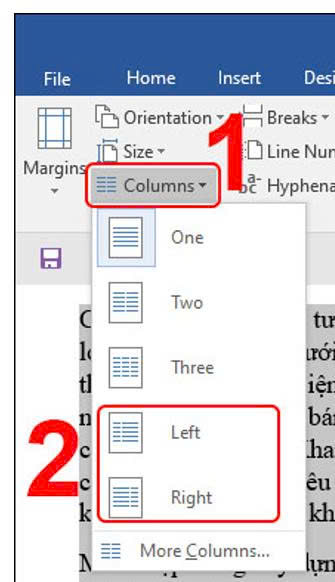Chọn Columns > Chọn Left (Nếu muốn cột trái nhỏ hơn cột phải), chọn Right (Nếu muốn cột trái lớn hơn cột phải).