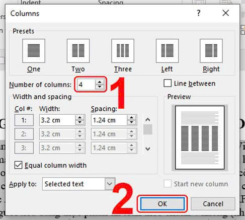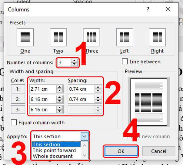 Tại mục Number of columns, bạn nhập số cột muốn chia > Click chọn OK.